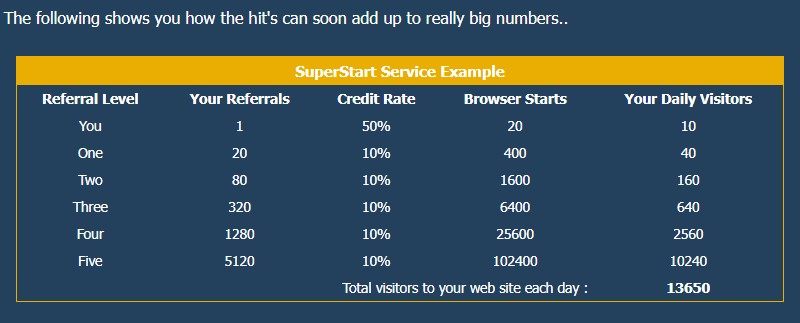 The idea here is to get hits for every website you visit and also points which build up to move you up on the level ladder. The more points you have the higher you are on the ladder.